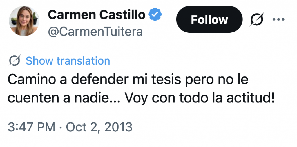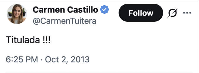 En Septiembre de 2013, CaCas estaba solo como egresada y no titulada, esto porque arrastraba una alta deuda con la universidad que le impedía titularse de no ser saldada primero, y dentro de mi afán de ayudar, además de apoyarla con sus temas económicos, yo pague el derecho a defender su “tesis” para obtener su título profesional ademas de dicha deuda que tenía hace varios años con la universidad que le impedía titularse. Esto no lo digo por sacar en cara algo, lo hago para que no se sorprendan con las cosas que hace y de lo que es capaz, además me aburri de estar en silencio y no exponerla en como ella es, y para demostrarlo hay que mostrar la verdad a detalle, no hay nada más bajo y de mal gusto que la traición, y ella es asi, mal agradecida y traicionera, durante los últimos 12 años se encargo de difamarme que le debía dinero con una acusación manipulada y falsa que usó para intentar sacarme mas dinero luego que la pille siendo infiel, pero ya sabemos que todo esto es parte de su Modus Operandi, luego de eso y sus mentiras, ya nada me impresiona de su marco valórico y de lo que es capaz de hacer. Pero que nos va sorprender si fue capaz de casarse y separarse al mes, no sin antes sacar una mascadita de una empresa.