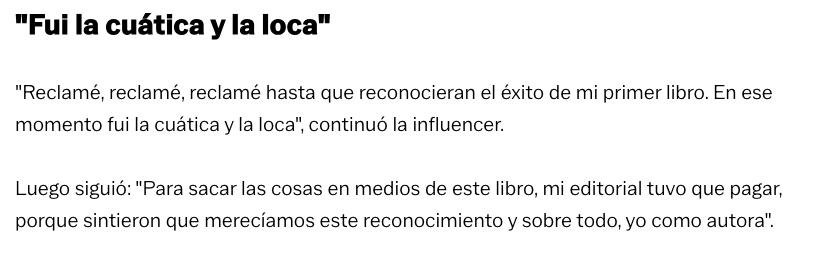 Esto no viene más a corroborar otra de sus rúbricas “De todas las funas sacó beneficio económico“, con una memorable frase “Fui la cuática y la loca, reclame, reclame, reclame, hasta…..” no se porque te creo CaCas, es tu modus operandi, literal el texto lo sacamos del Post / entrevista que ella dio al diario “La Cuarta” el 25 de Febrero de 2021, por si manda a borrar el link lo tenemos en PDF. https://www.lacuarta.com/tendencias/noticia/autora-weona-tu-podi-funo-ranking-libros-el-mercurio/606144/#goog_rewarded