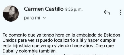 CaCas Dice: Con total seguridad de una semilla hace 11 años (ella se refiere asi al menor), para no vulnerar los derechos del menor solo hablare de los adultos, y lo que ella no dice, primero no dice que salió de la casa, por todos los problemas de convivencia, sino que además por la petición del ADN, que cuando se le pidió no lo hizo, y nunca ha accedido a hacerlo (PD: “Porque ella no lo pidió legalmente tampoco?” Ley pareja no es dura). Y por otro lado, al descubrir que esa semilla o plantita había sido regada por varias personas (C.R. por ej.) desde mi lado vino el bloqueo financiero, sin claridad no puede haber reciprocidad, entendemos que quiera beneficio económico a toda costa, pero no usando algo de esta magnitud. Como prueba que aun separados y cuando aún creía que era el P.B. la seguí ayudando financieramente hasta el 14 de abril de 2014, pero al corto andar dado que yo le había regalado mi Iphone, dicho Iphone estaba vinculado al icloud familiar, asi que podia ver donde estaba (Cuestionable éticamente, si, pero válido y que luego mostró la verdad), como evidencia, este fue el ultimo correo con lo cual se cortó toda ayuda financiera y cualquier tipo de comunicación, hasta no esclarecer todo como corresponde y sobre todo realizar el examen de ADN, sus correos de pedida de dinero (sin respuesta de mi parte) son después del 14 de abril, como se ve en las evidencias que se muestran, pero claro no muestra este correo porque no le conviene, luego de esta fecha se le envió el último correo el 30 de abril de 2014, donde por consejo legal y no tener la certeza de nada, solo debería hablar con mi abogado (CaCas tu misma confirmas la fecha en tus historias). Entonces ¿Dónde estabas CaCas el 15 de abril de 2014 a las 1:21 de la madrugada? ¿ Le devolviste el poleron con el que saliste a las 8AM desde la casa de C.R? (verdad que tus pantallazos también se sincronizaban con mi icloud y besitos para allá y para acá o no “Carnecita” como te decía C.R)….. que te gusta sacarle pantallazo a todo, por que lo haces, a verdad para luego extorsionar… bueno esa “carpetita” te jugó en contra.